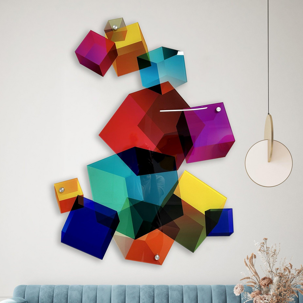 Wall Sculptures: Our Wall Sculpture collection features printed, vibrant pieces of art on thick, high-quality acrylic. The glossy finish adds depth and dimension to these abstract wall art pieces, transforming any background into a visual masterpiece.
